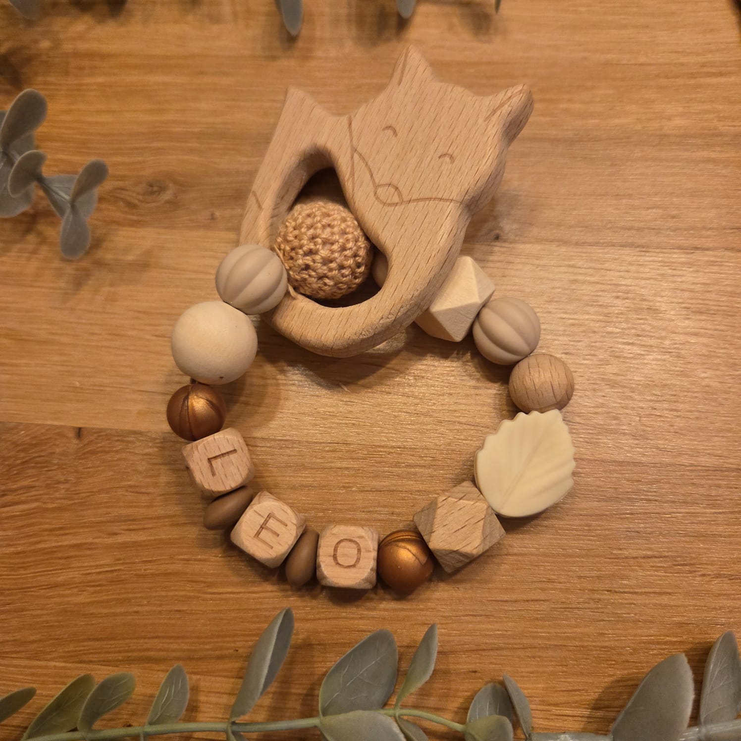Jeder Beissring kann individuell personalisiert werden und wird so zu einem besonderen Begleiter voller Liebe und Stil.