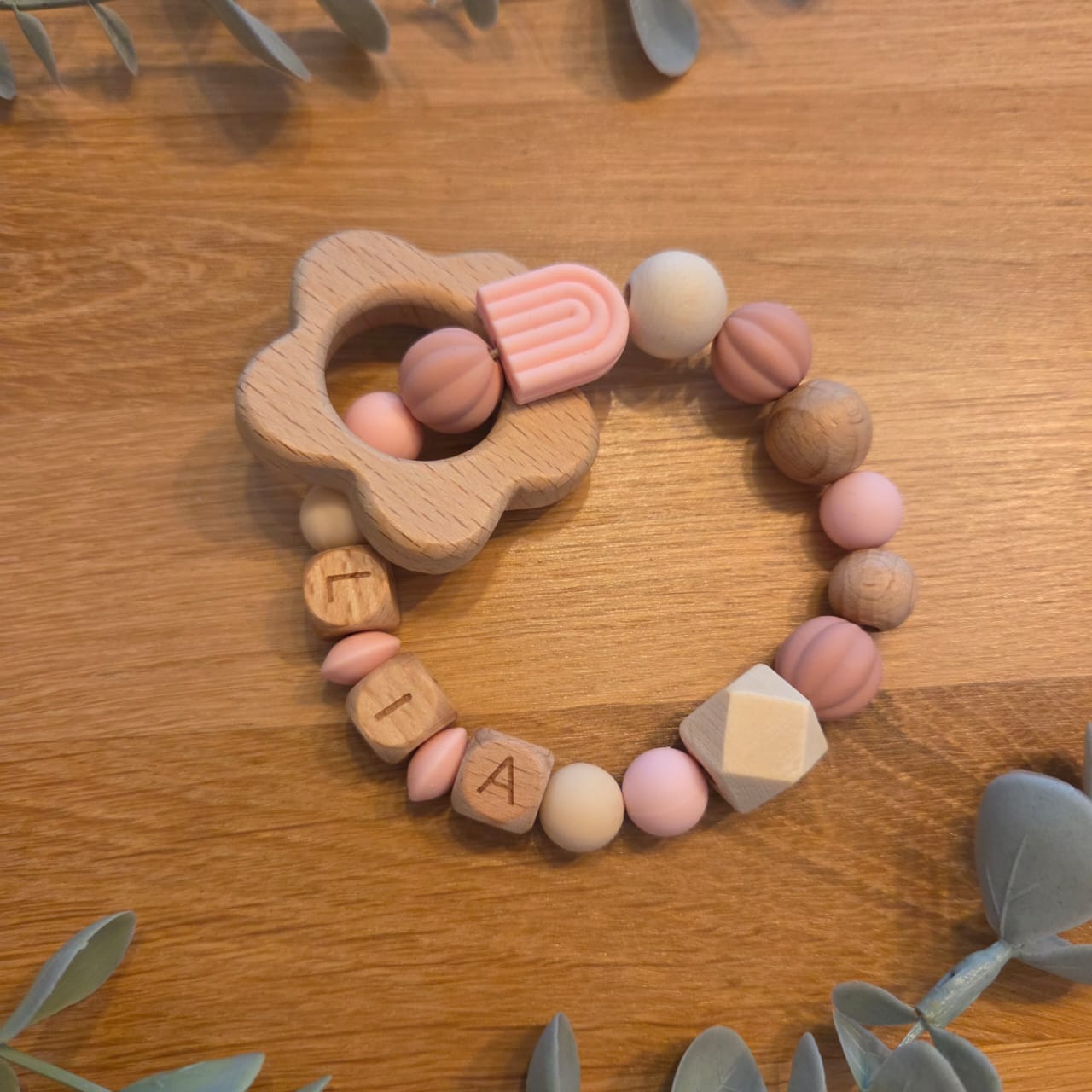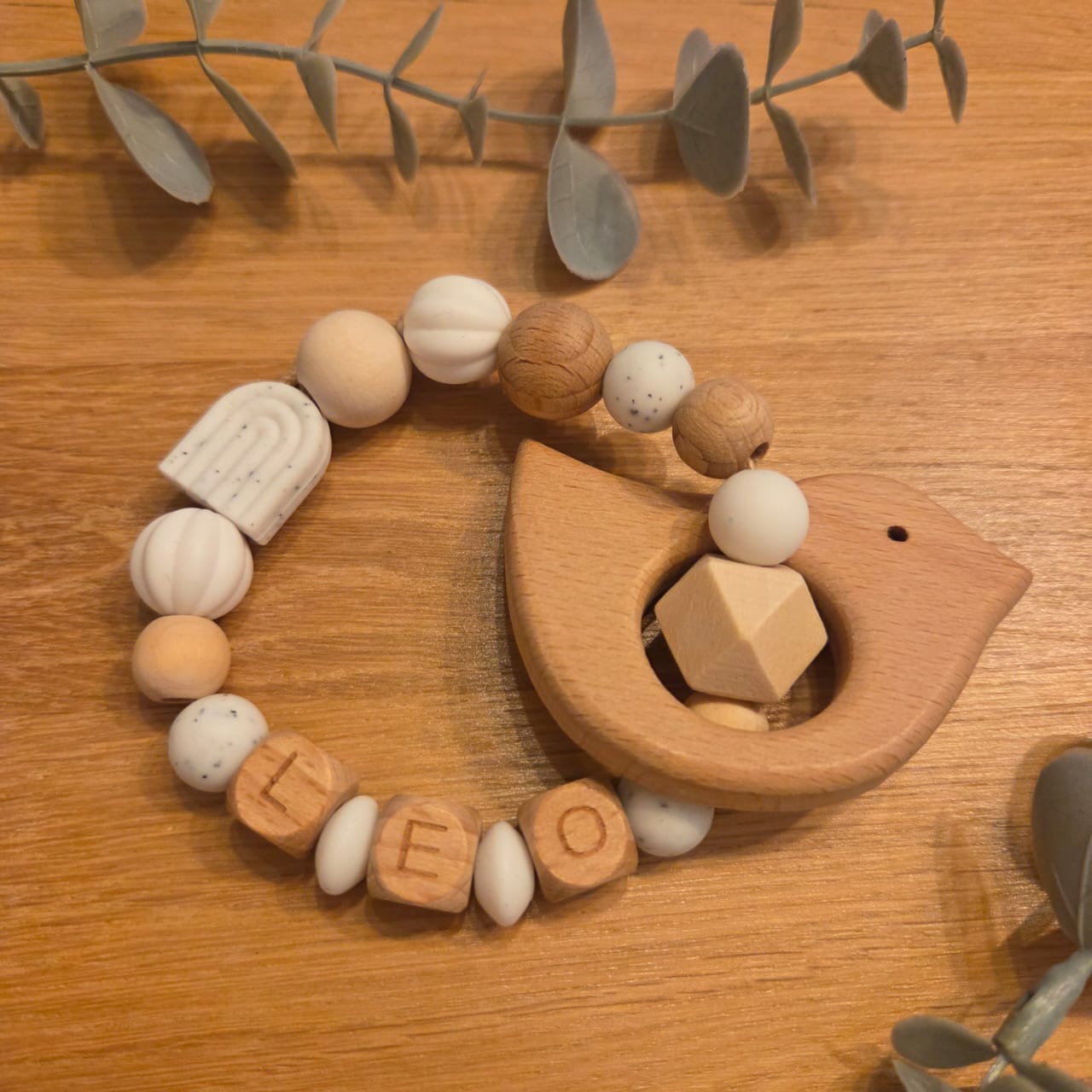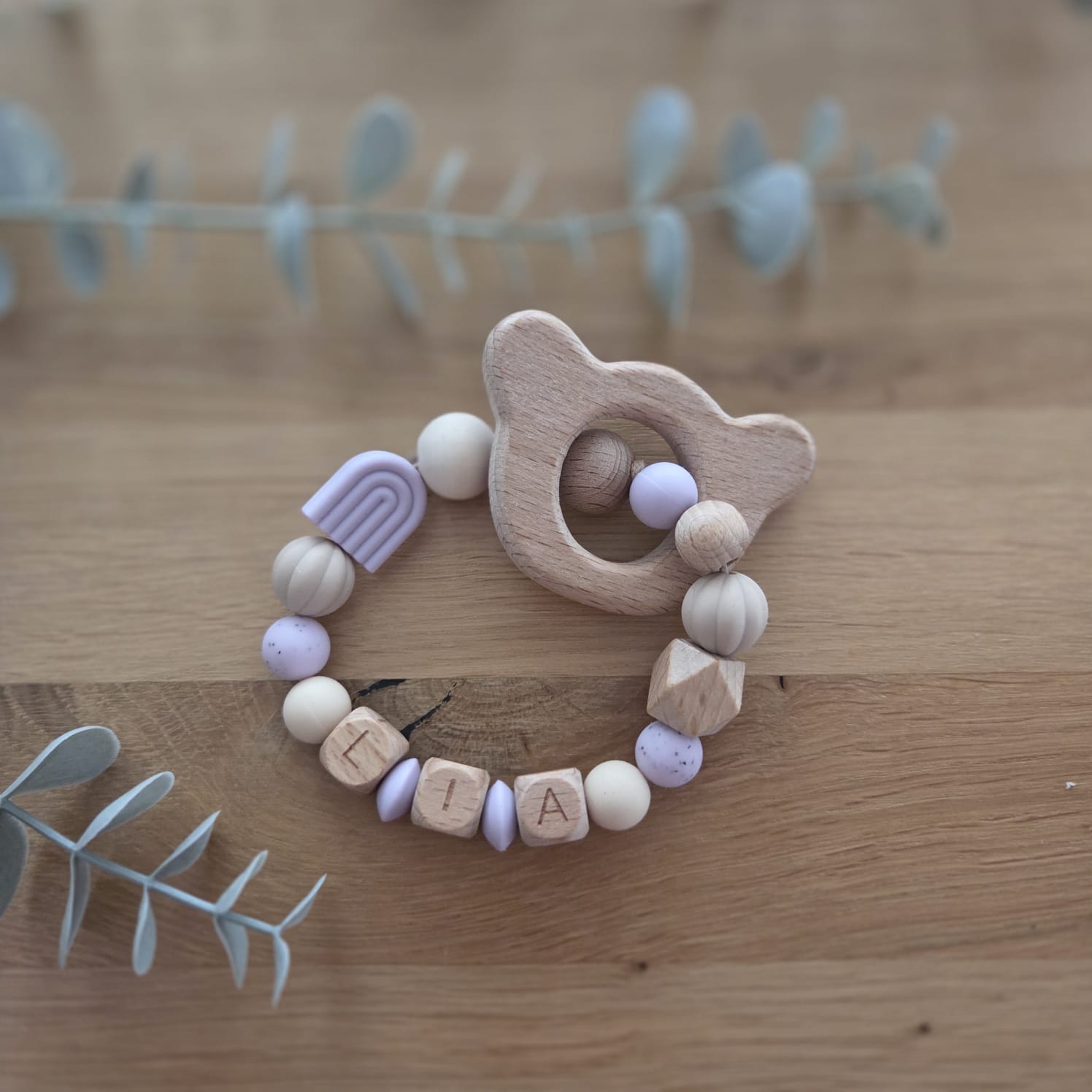 Jeder Beissring kann individuell personalisiert werden und wird so zu einem besonderen Begleiter voller Liebe und Stil.
