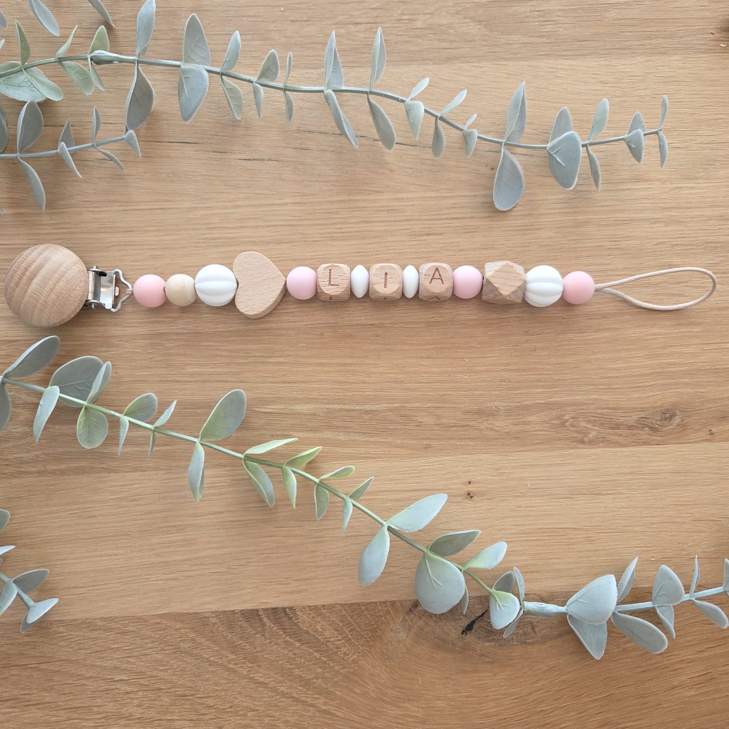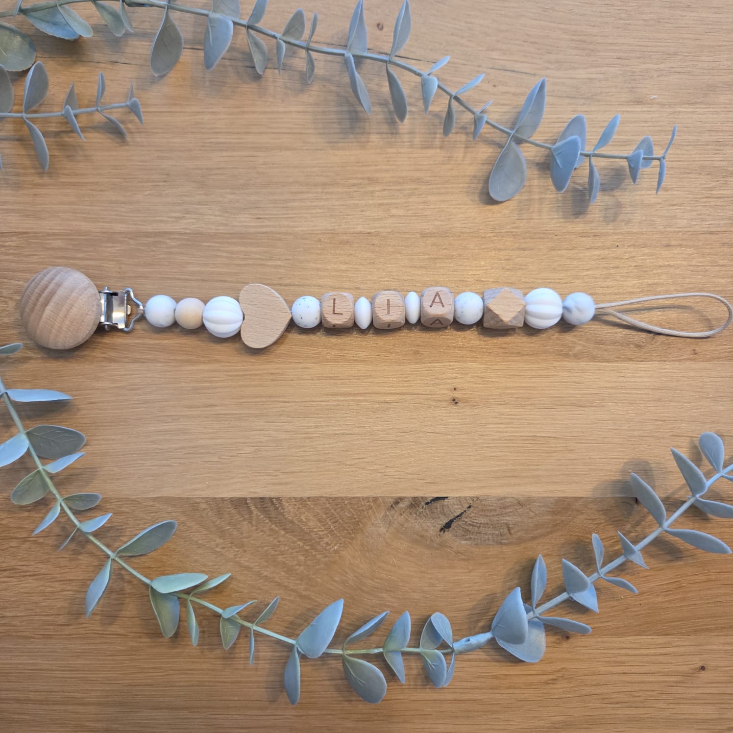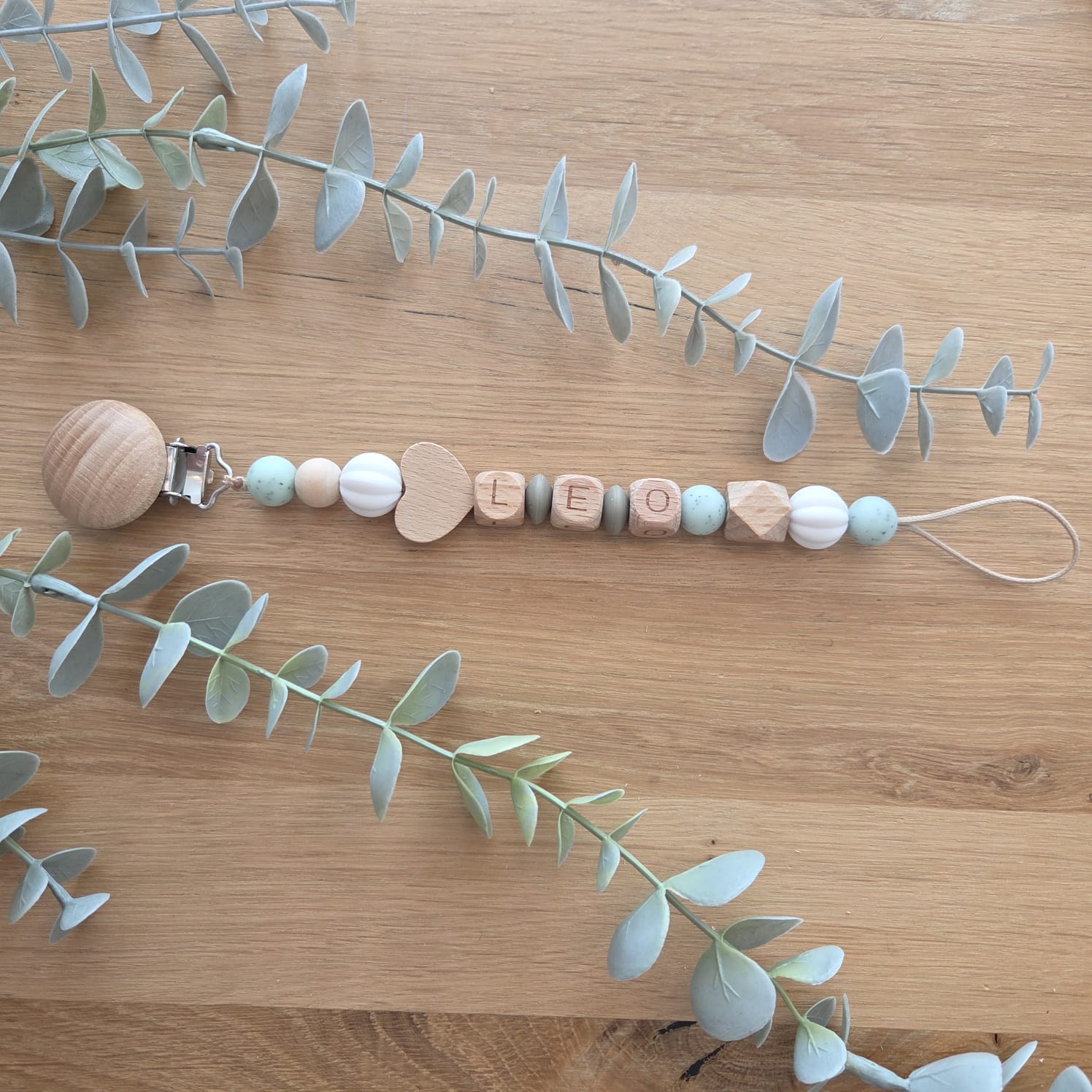 Unsere personalisierbaren Nuggiketten verbinden zeitloses Design mit höchster Qualität. Sie halten den Nuggi stets griffbereit und setzen gleichzeitig einen stilvollen Akzent.